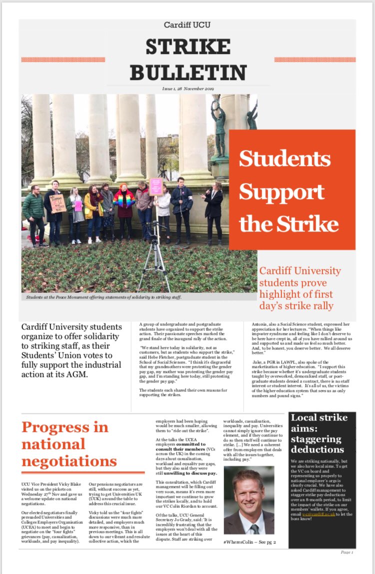 Image of Strike Bulletin #1 page 1 Published 28 November 2019 at 750 × 1148 in Image of Strike Bulletin #1 page 1